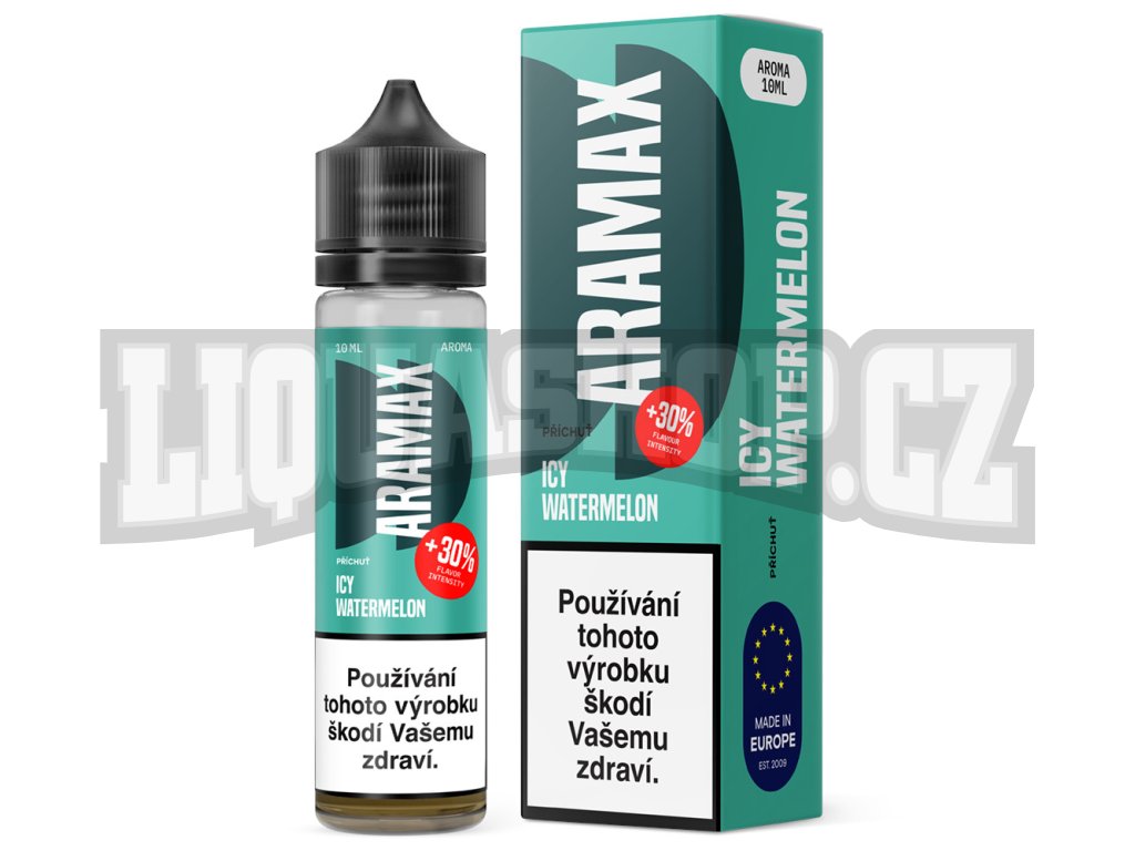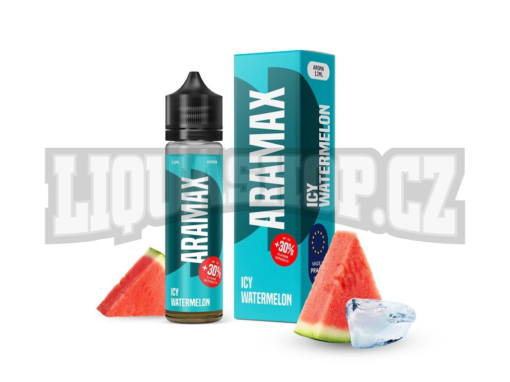 Vodní meloun posazený na ledovém základu. Nová řada Aramax Shake and Vape s intenzivnější chutí.